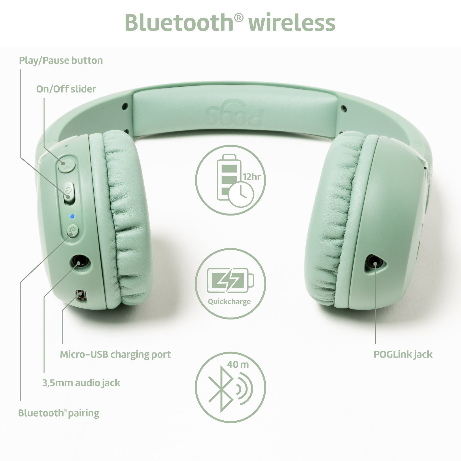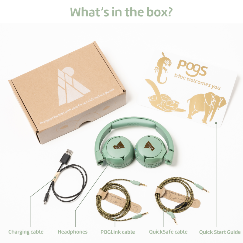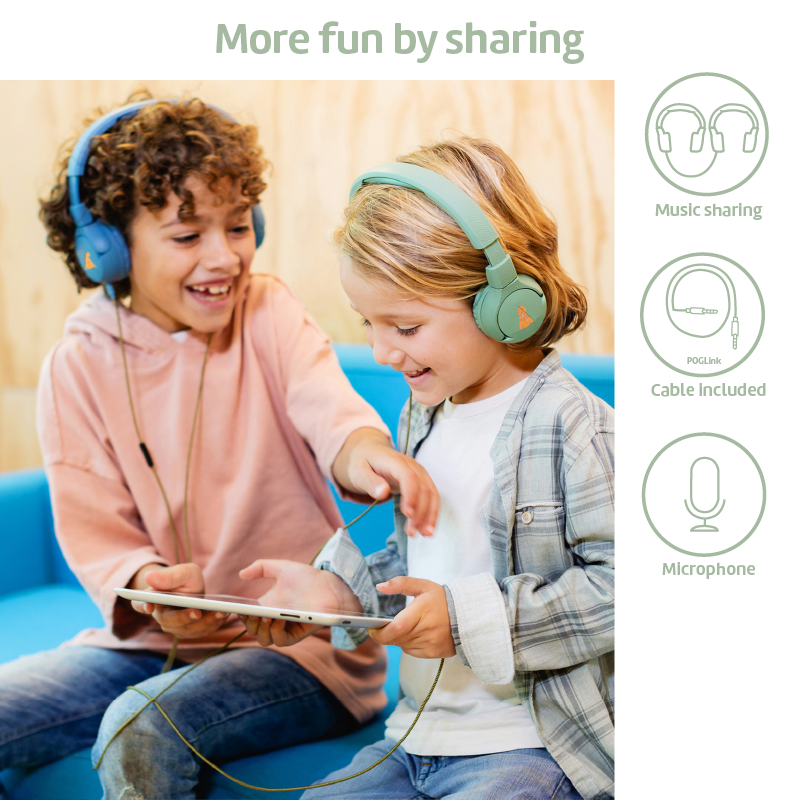 - POGLink cable included to enjoy music together by connecting multiple headphones together.